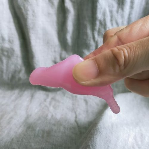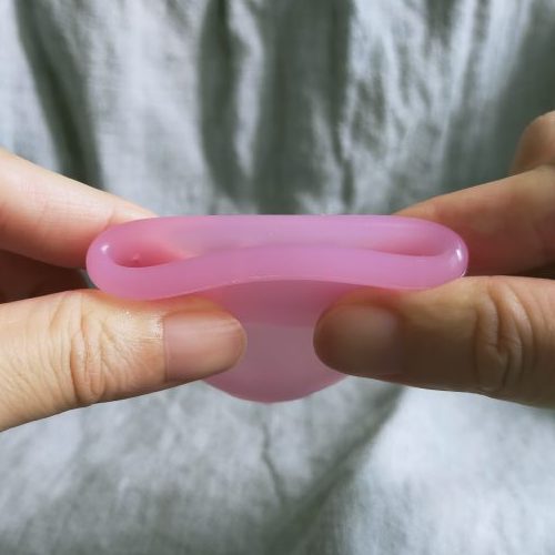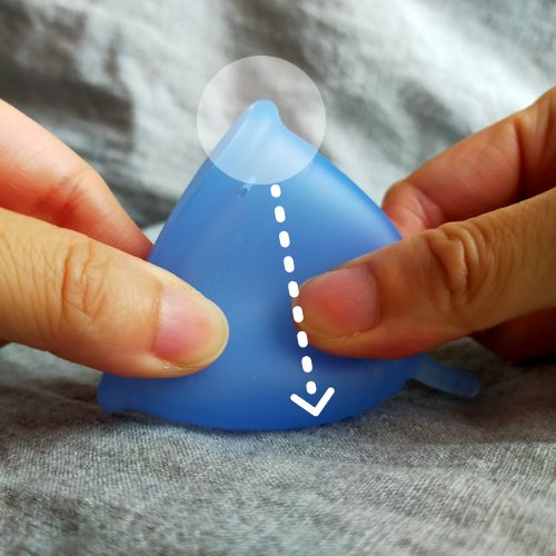 (カップが妙な向きに回転してしまうと漏れの原因となったり、持ち手が膣壁に当たって違和感・痛みを感じたりすることがあります。。)
