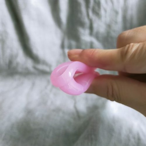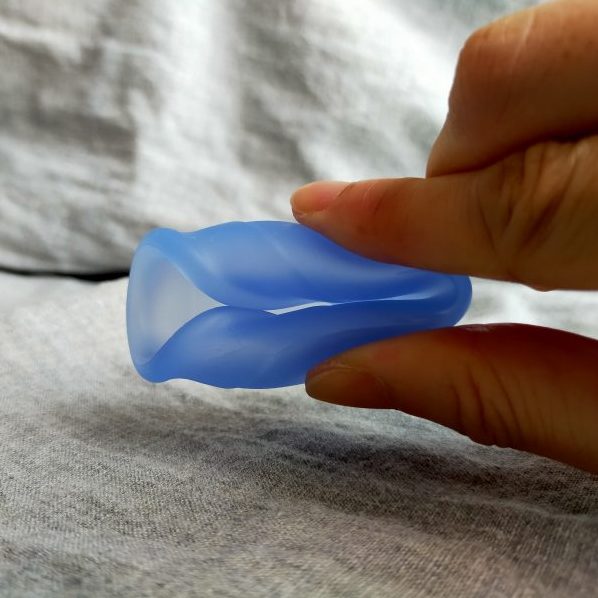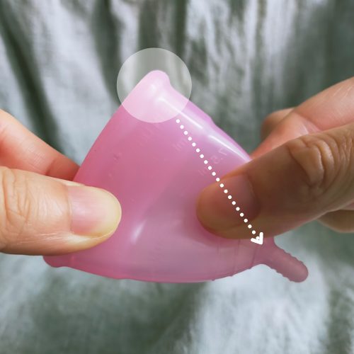 カップの内側に折り込まれた部分が恥骨に圧迫されないので、開きやすくなります。 - かたいカップの場合、折った状態をキープするのに力が要ることがあります。