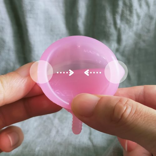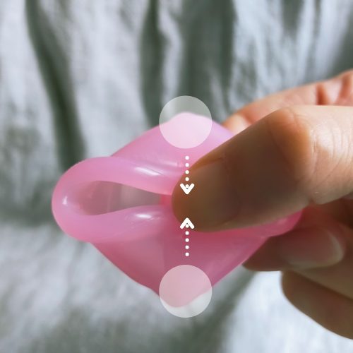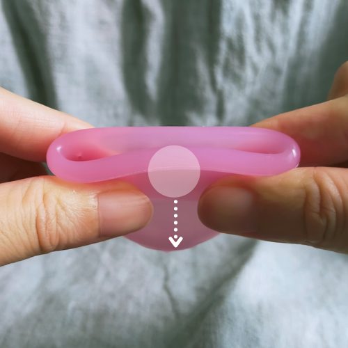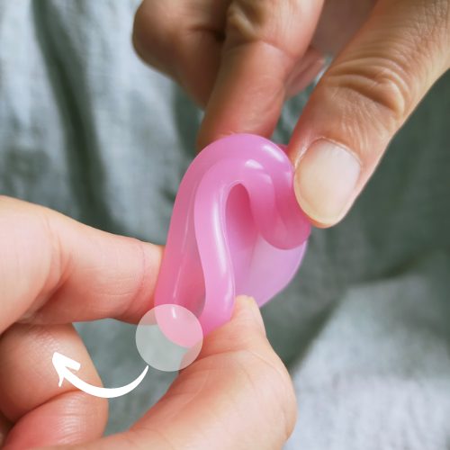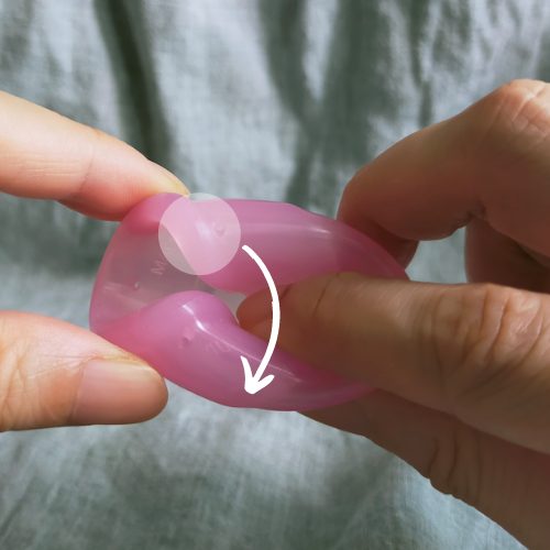 挿入後に、カップのリブ(おしり)部分をつまんで左右にくるくる回すと、自然とカップが開いてくれます!