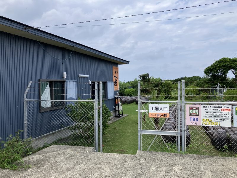 よろん島きび醋本舗では『工場入口』の門が開いているときはいつでも対応いただけると聞いていましたが、念のため事前に電話で見学の予約を入れてから訪問しました。
