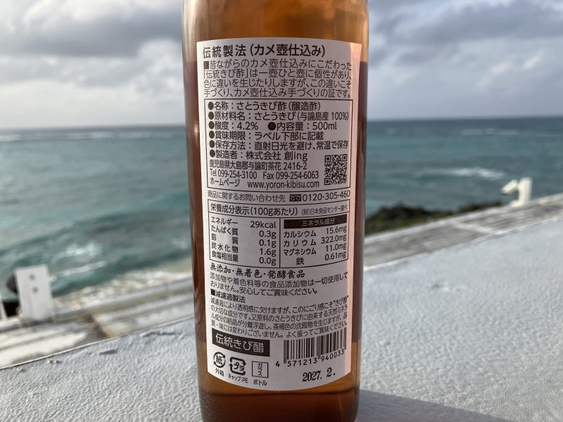 良質な与論島産サトウキビだけを100%使用してつくられる『よろん島 きび酢』。