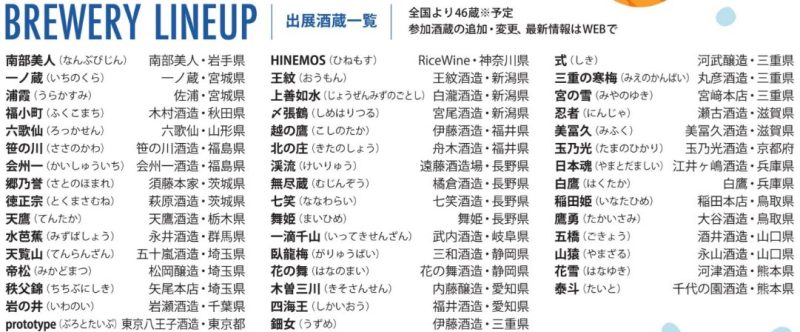 第25回 和酒フェス in 中目黒 参加銘柄リスト