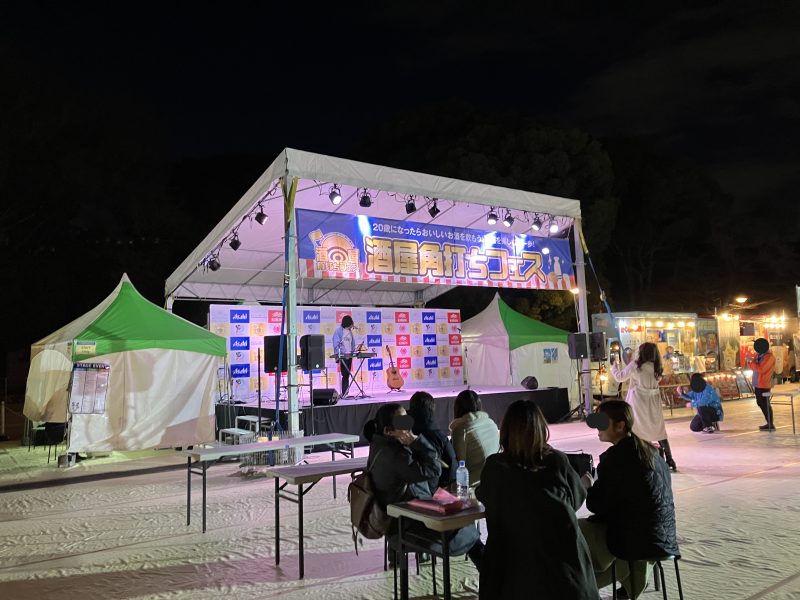 角打ちスペースでは各お酒屋さん選りすぐりのお酒を、フードエリアではお酒に合うおつまみから食事系まで様々な料理を、音楽スペースではアーティストによる歌や踊りなどのパフォーマンスを楽しむことができるイベントです。