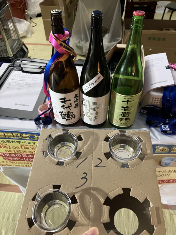 有料きき酒体験コーナーでは1500円で3種類のきき酒を楽しめます。