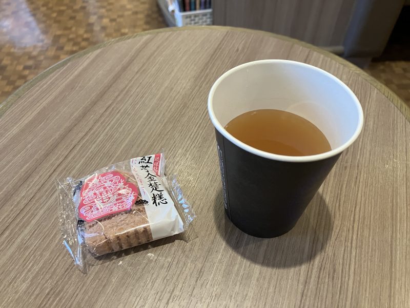 - 数種類のちんすこう、うまい棒、サラダせんべいなどのスナックが食べ放題