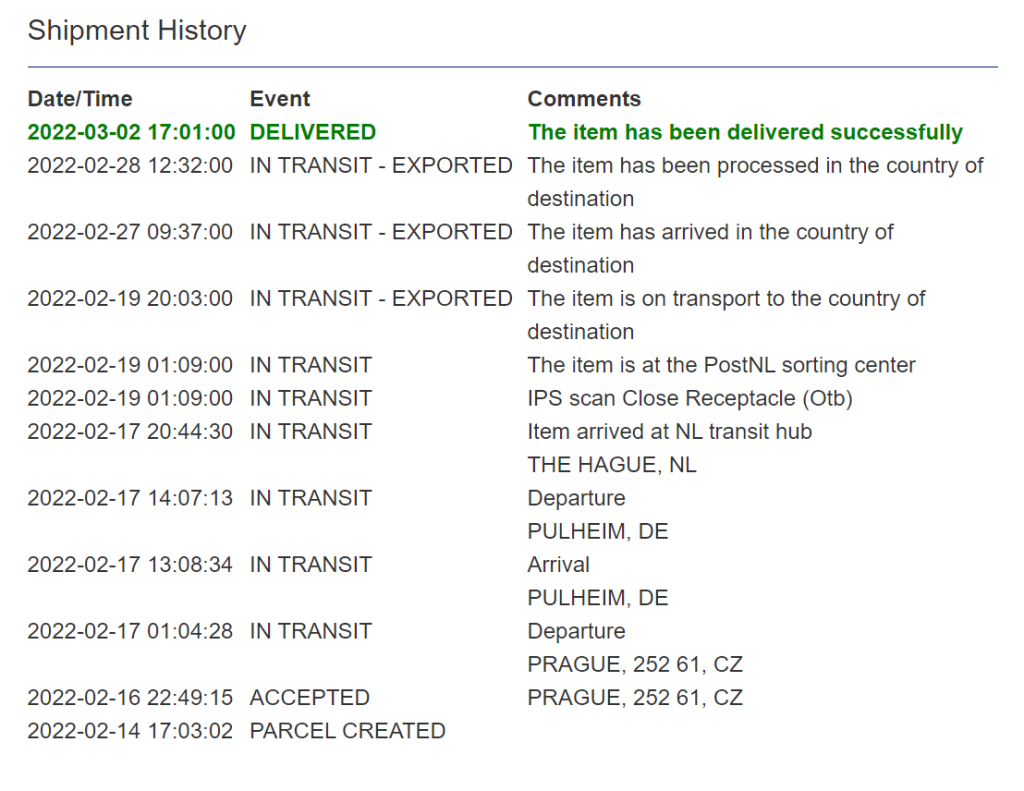 ということで、ほぼ月経カップをオーダーしたことを忘れかけていた頃にメールを整理していたタイミングでYuuki Cupの商品を注文したことを思い出し、トラッキングページを確認したのが2月9日。