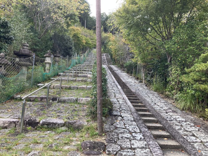 坂本口から比叡山への登り口は日吉大社の左隣、こちらの階段です。