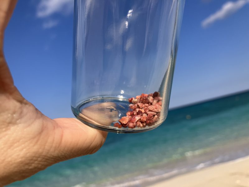 …という事で雨でない日には近くのビーチに足を運び、せっせとオリジナルの星の砂ボトルをつくってみることにしました。