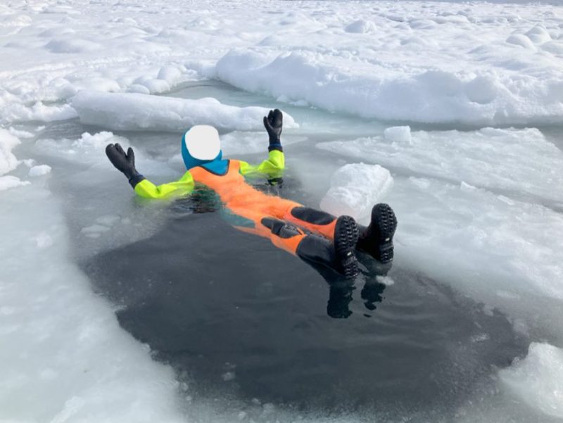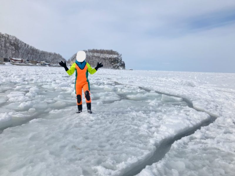 以前は冬のオホーツク海に入るなんて考えもしないようなことだったようですが、最近は防寒・防水のドライスーツが開発されたお陰で流氷ウォークというアクティビティが開催されるようになりました。