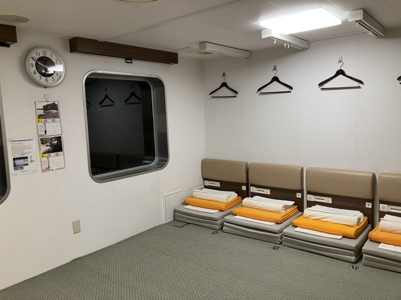 船で(しかも雑魚寝で)一夜を過ごすということで何も期待していなかったんですが、想像以上に快適に過ごすことができたので、1500円をケチらなくてよかったと思います。笑