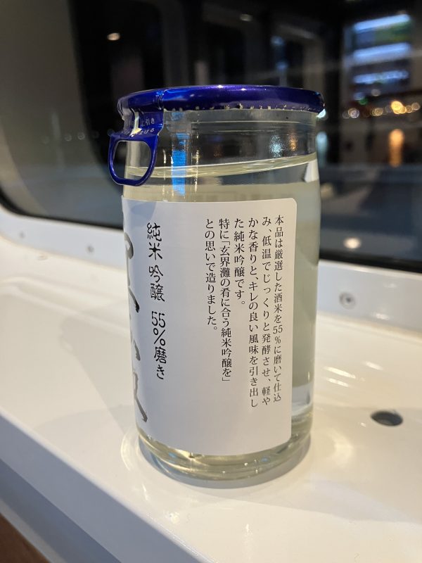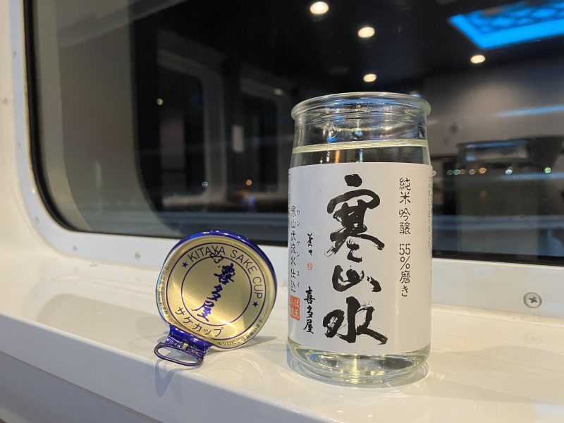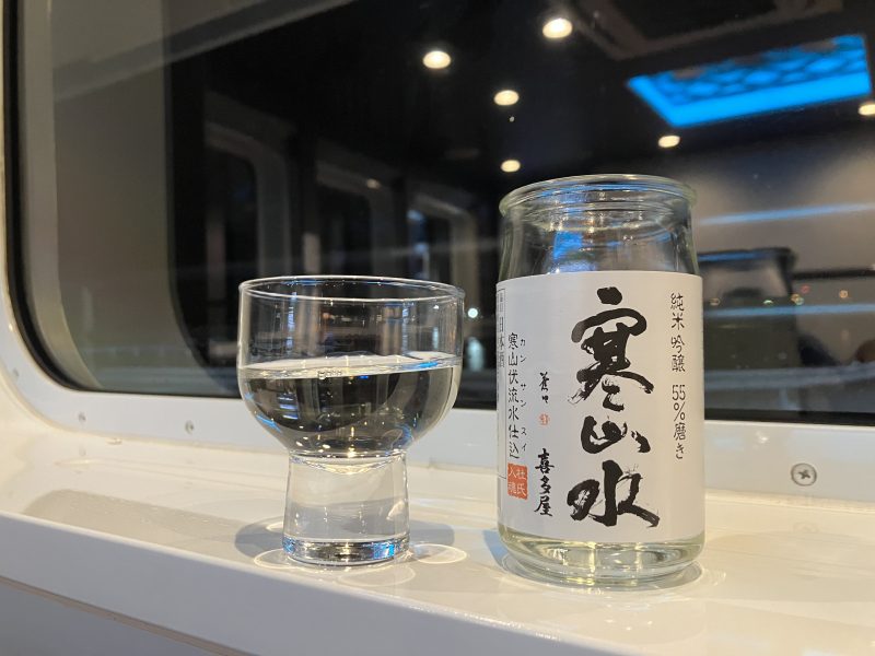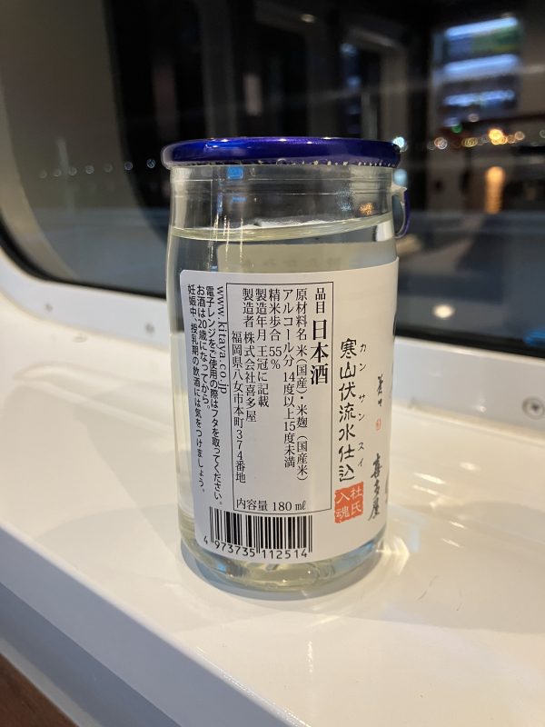 今回フェリーに乗り込む前に購入したのは福岡のお酒・株式会社喜多屋の純米吟醸55%磨き寒山水です。