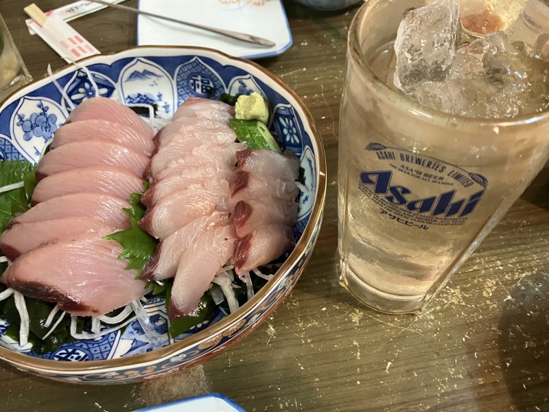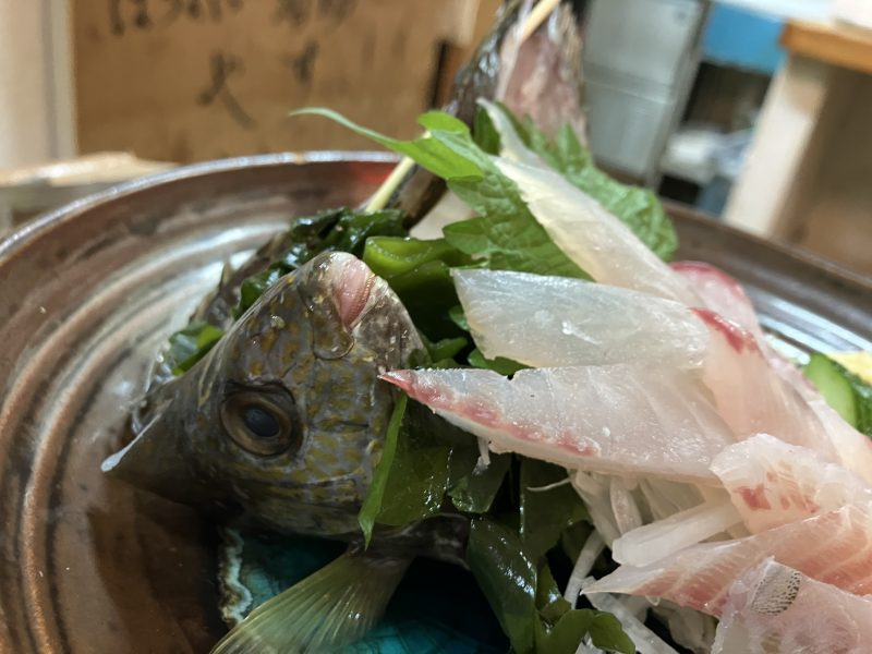 こちらはこの日のマスターおすすめの、アイナー(アイゴ)のお造り。