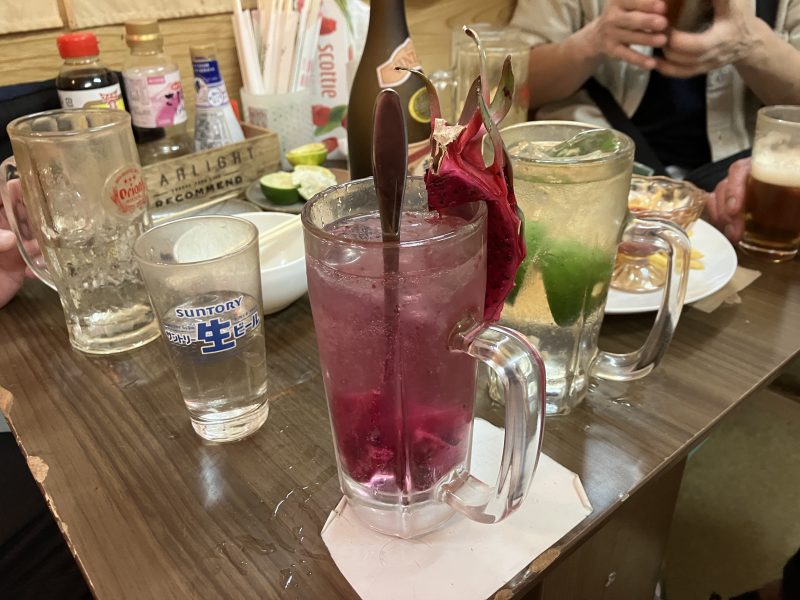 ドラゴンフルーツサワーと島みかん(イシカタ)サワーをオーダーしました。