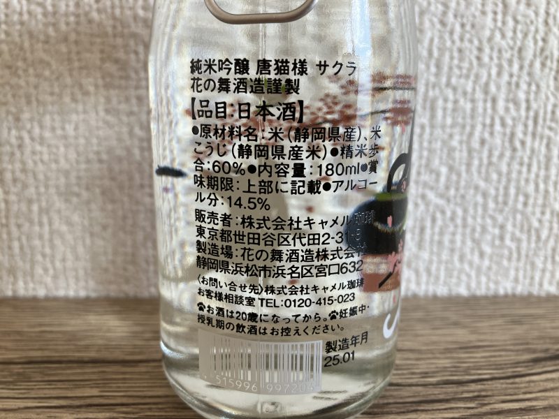 にゃんカップ『純米吟醸 唐猫様 サクラ 2025』のスペック