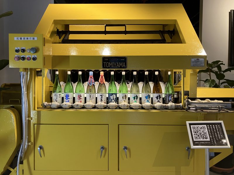 瓶詰めをしていたエリアを改装して造られた角打ちスペースにはかつて瓶を洗うために使用されていた機械が展示されており、おしゃれな空間となっていました。