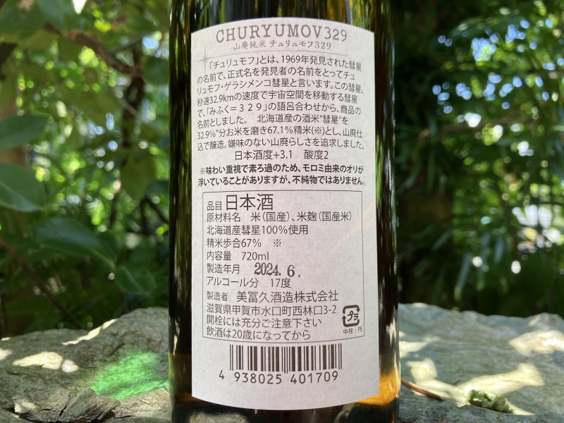 『彗星』を32.9%磨き、山廃仕込で醸された『みふく 山廃純米 チュリュモフ 329』は嫌味のない山廃らしさを追求したお酒なのだそう。