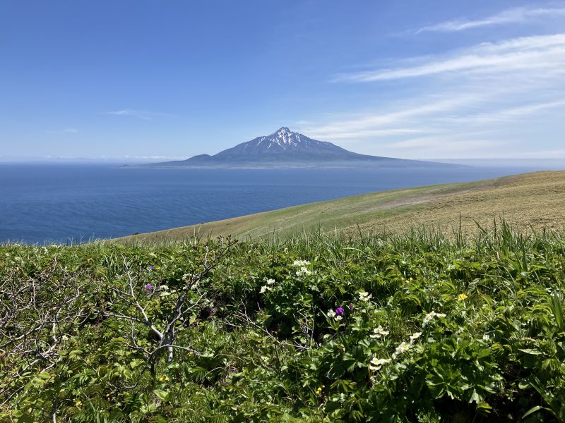 この日は雪の残る利尻富士が見え、花、山、海と360度ただひたすらに美しい景色が広がっていました。
