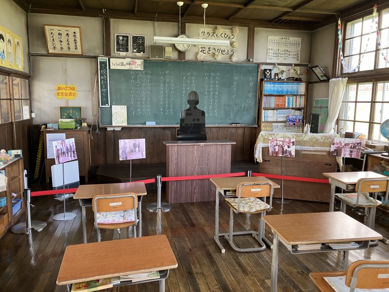 このカフェの向かいにある学校『麗端小学校岬分校』は映画を撮るために、校舎の横に元地灯台と利尻富士が映るように計算されてつくられたのだそうです。
