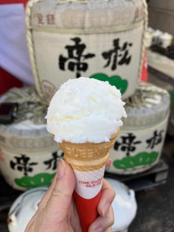 酒蔵見学のあとは、酔い覚ましに大吟醸アイスクリームを食べました。