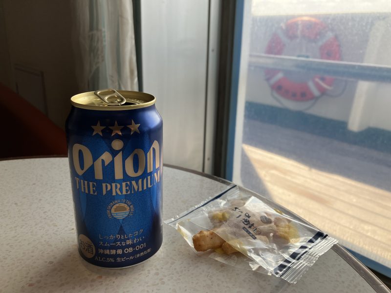 今回はたった二時間の乗船なのでサクッと缶ビールでキメてみました。