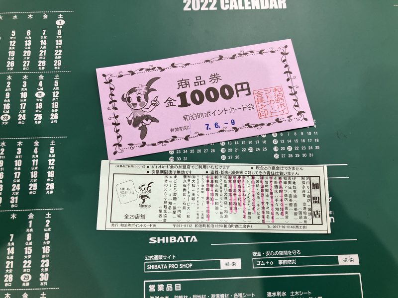 商品券は和泊町ポイントカード会に加盟店で利用可能。
