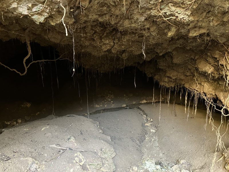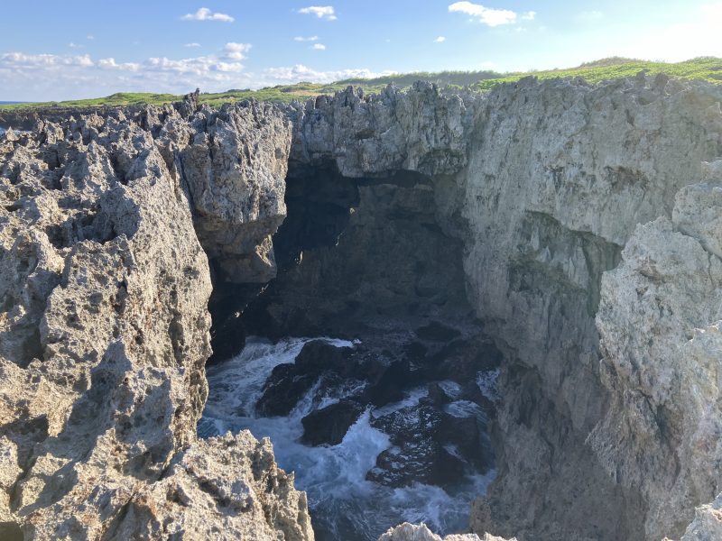 上から洞窟をのぞき込むように見学するのですが、風が強くてすごく怖かったです。