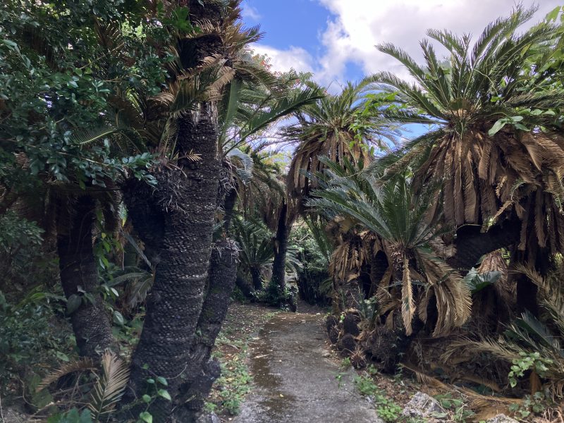 約500mのソテツジャングルの小道の両脇には大きなソテツの木がうねうねと植わっています。