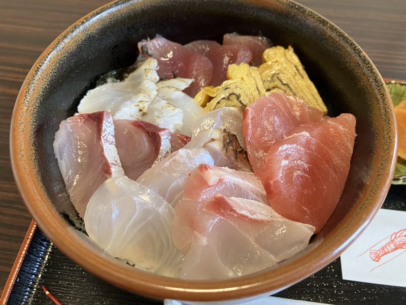 伊勢海老の下にも絶景が、、新鮮な海鮮は大変美味しかったです。