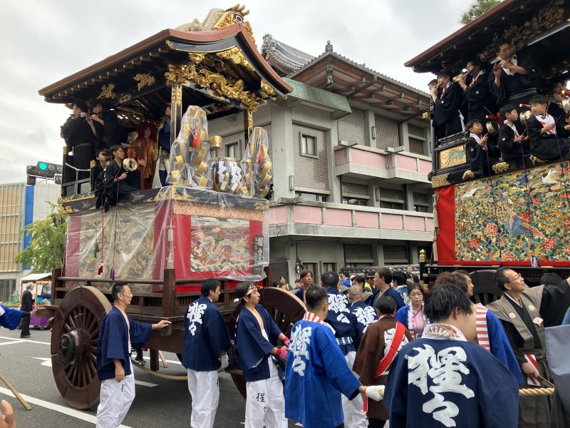 当たり前なんですが、人力で山車を引っ張っているのを見て感激してしまいました。