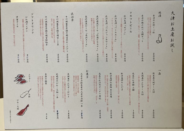 JR大津駅にて電車を待つ合間に大津駅観光案内所 otsury (オーツリー)を訪れたのですが、そこで地酒飲み比べセットなるメニューを発見。