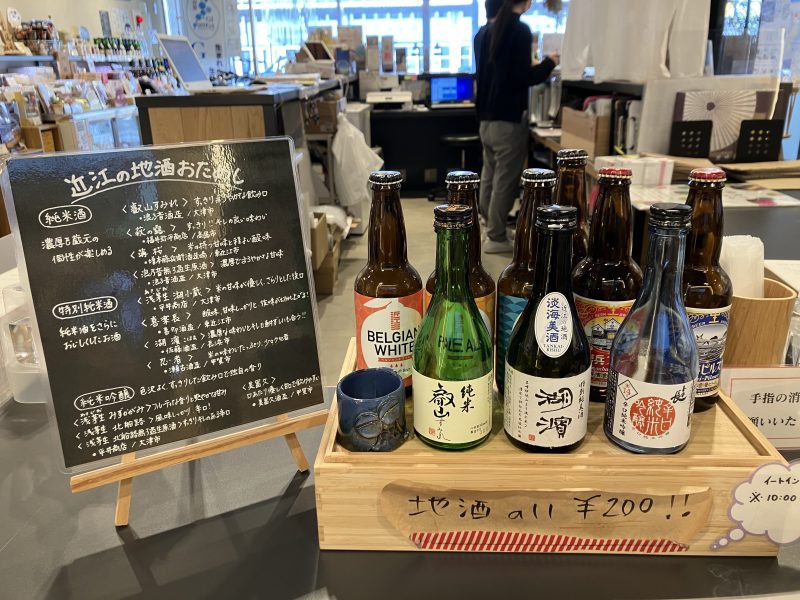 なんと、500円で3種の滋賀の地酒が飲めるセットがあるということだったのでやってみたのでした。