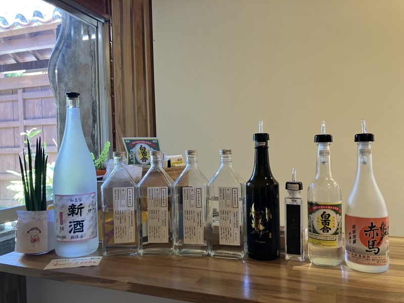 こちらでは赤馬・白百合・チョコレート専用泡盛・Shirayuri イヌイ菌仕込44度(右から4本分)の泡盛の試飲をさせていただきました。