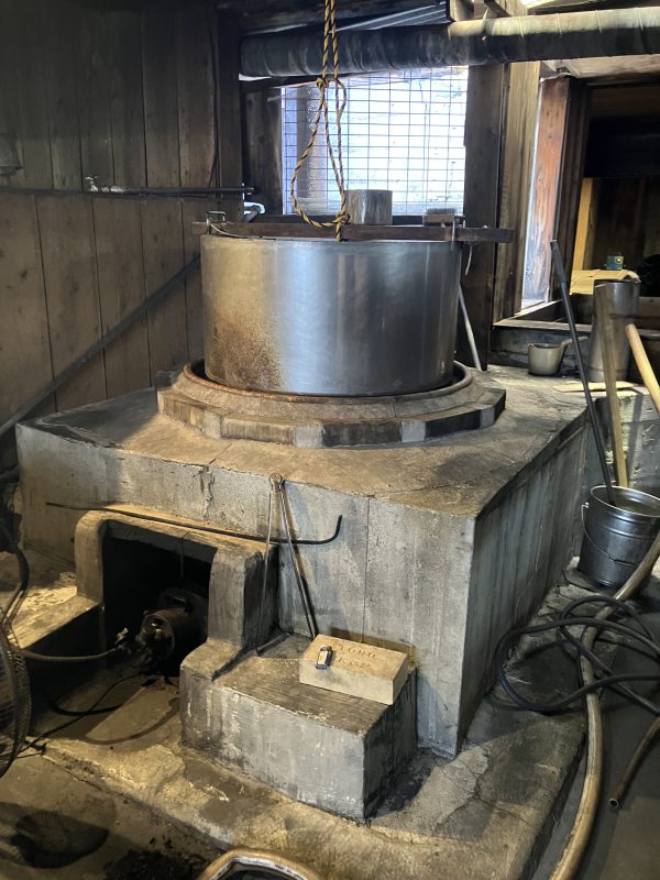 現在はガスを使用しているそうです。直火釜は酒造所によって特注のオリジナルのものを使用しているとのことで、それぞれ作りが違うんだとか。