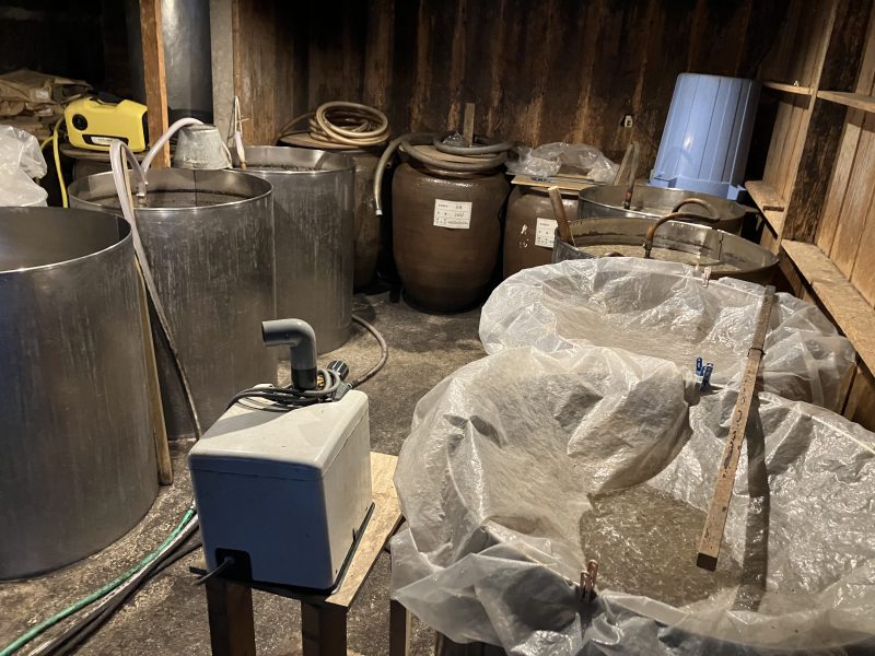 黒麹菌はかなり腐敗に対抗する力が強いため、蓋をせずに放っておいても頑張って発酵し続けてくれるうえ沖縄の高温多湿の気候にも強いとのこと。確かに、この空間には空調はなくめっちゃ暑かった。。