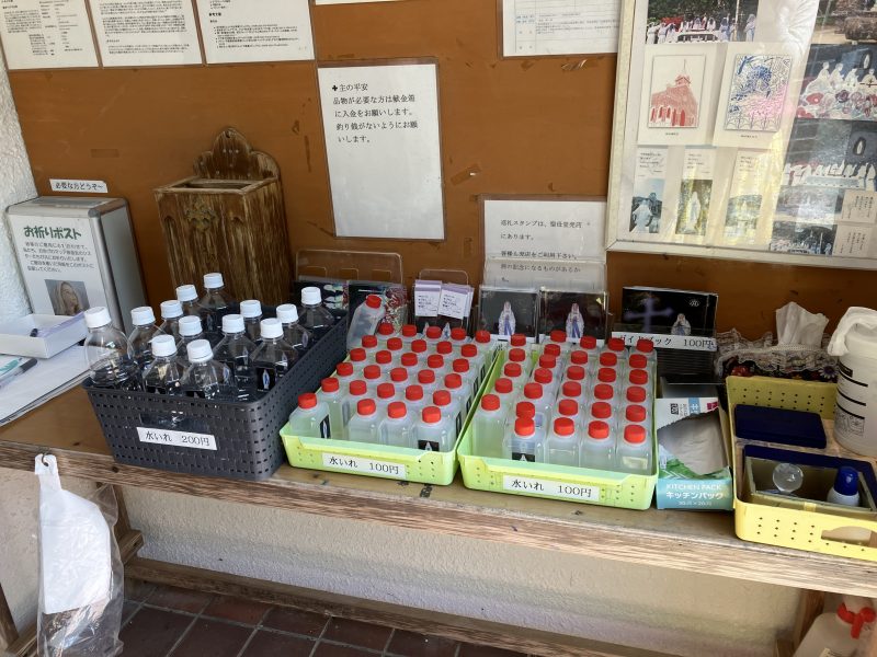 教会のサイドの入り口近くに持ち帰り用の容器も販売されていました。
