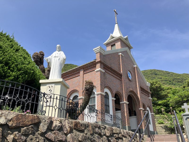 車窓からチラリとみるだけですが、もし確実に水之浦教会を見たい方はバスの右側の席に座ったらいいかもしれません。