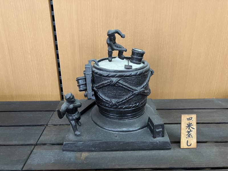 お酒が造られる過程を模型で表したものや、かつて使用されていた木の樽などが展示してあり見ていて勉強になるものがいくつも置いてありました。