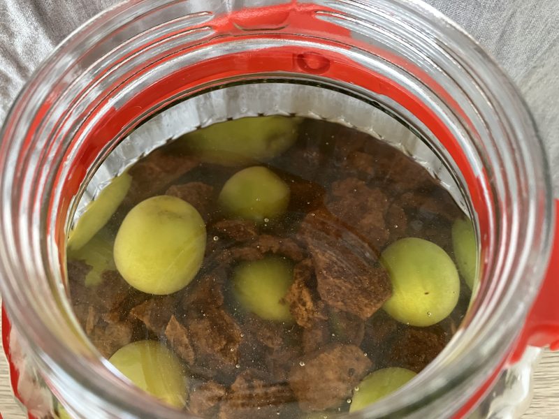 1年経ったものは中の梅を取り除長期保存ができるようなので、今からさらに6か月経ったら梅を取り出そうと思います。