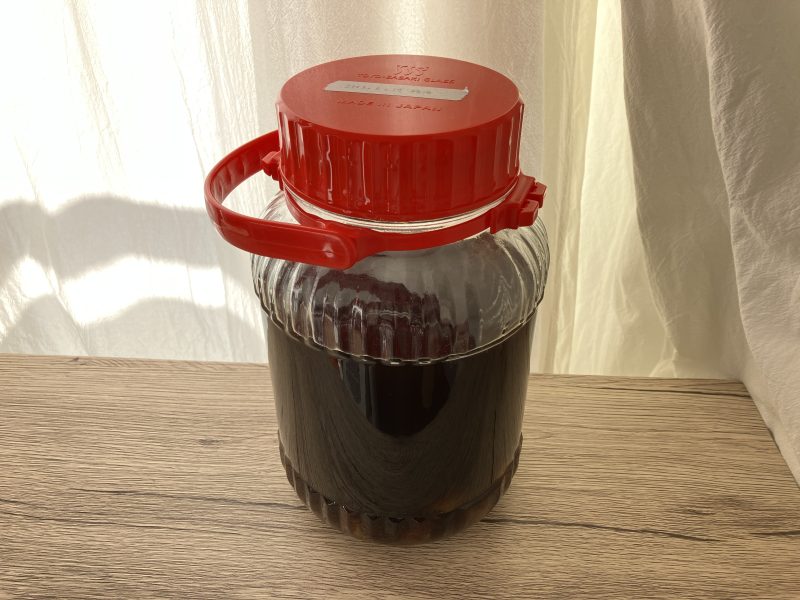 1年~1年半くらい漬けたら、中の梅を取り出して漉しておくと長期保存ができる。(入れたままにしていると梅酒が濁ってくる)