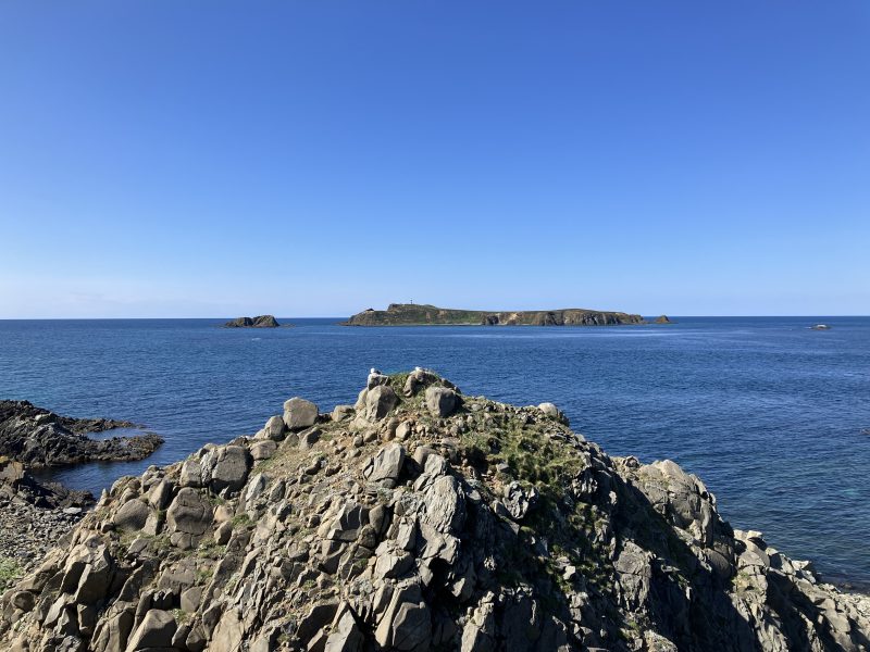 スコトン岬の展望台の正面に見える海驢島は無人島。