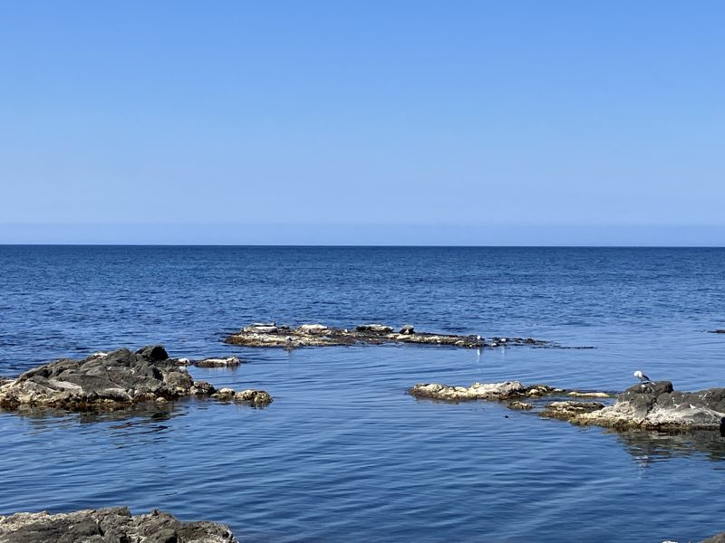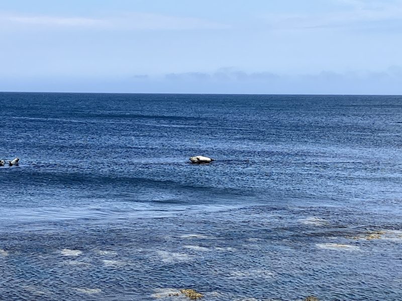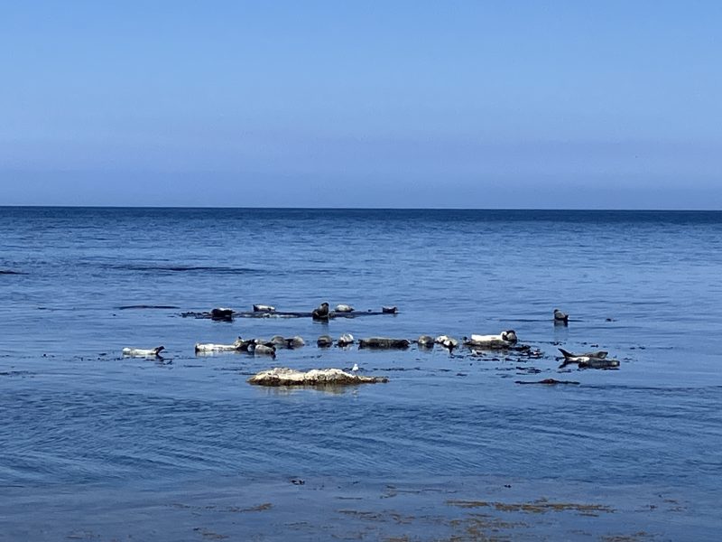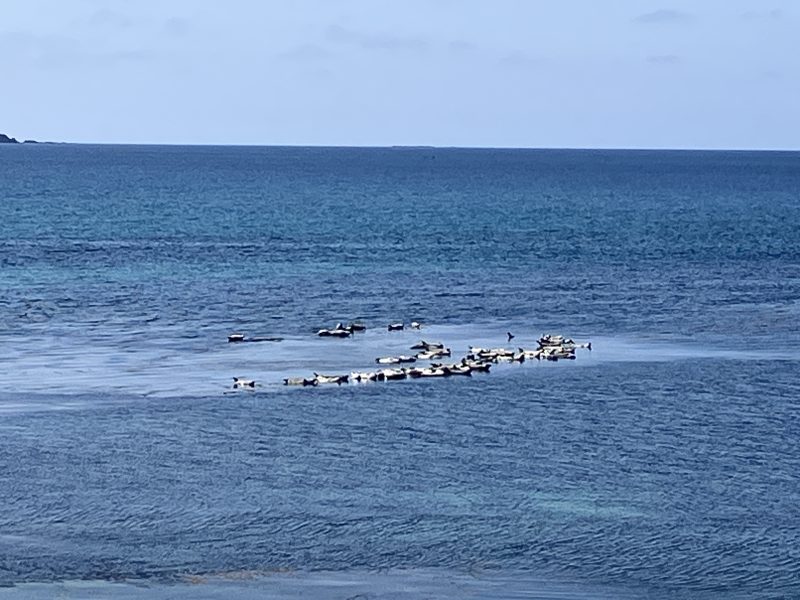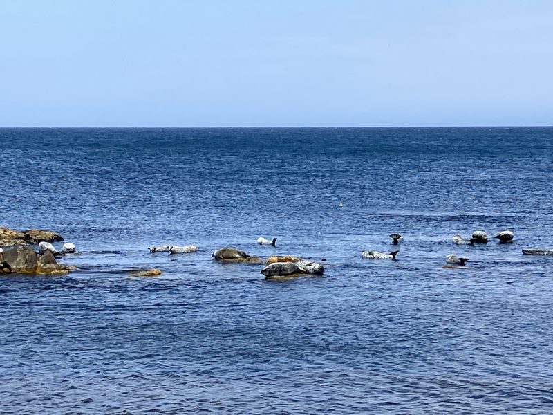 晴れた、波の低い日には海岸線の岩礁の上でアザラシが日向ぼっこしている様子が見られ、そののんびりした様子にとっても癒されます。